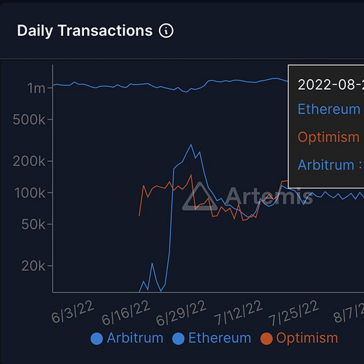 If the Arbitrum team does launch a token after all, which would allow the rollup to become more decentralized as the sequencer can be controlled by governance instead. This would draw further capital to an ecosystem that already has been thriving without any incentives or marketing. The layer two wars are heating up and in the current scenario, I know what horse I’m betting on (ZK-rollups might change that but time will tell).
