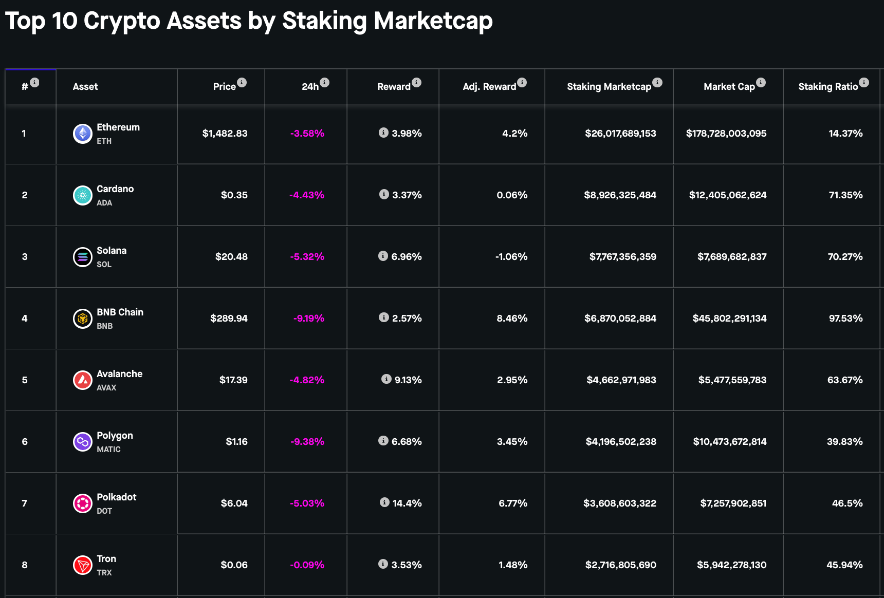 As alluded to Lido is leading the market and I expect its market share to decrease. However, considering only 13.8% of the current ETH supply is staked, I expect this number to severely increase over the coming quarters. Why? 13% is incredibly low in comparison to other blockchains and when the average consumer knows that they can withdraw at all times without any complications, the staking rate is bound to increase on Ethereum. Other Proof-of-Stake chains are averaging a staking rate between 50-70% and there is no reason why Ethereum will be any different.
